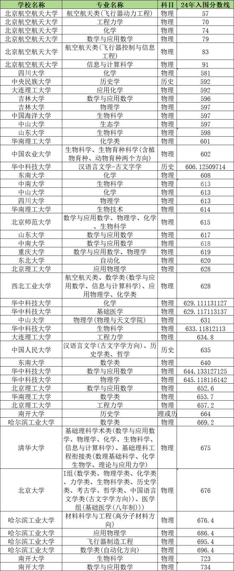 下面是湖北强基计划入围分数线表: