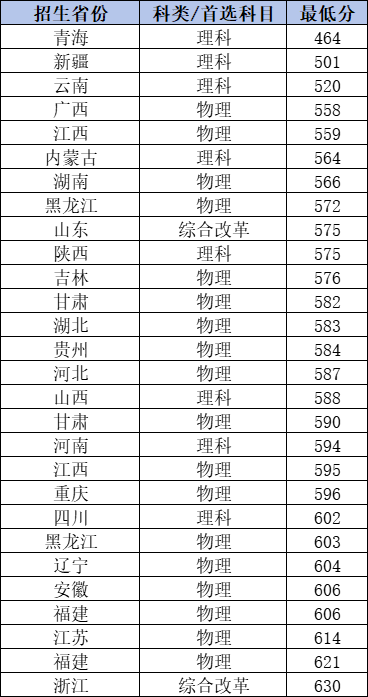 以2024年高考招录数据为例,东北大学高校专项计划在全国各省招生分数范围位于464分~630分之间。其中辽宁考生物理类最低需604分;云南考生理科最低需520分。