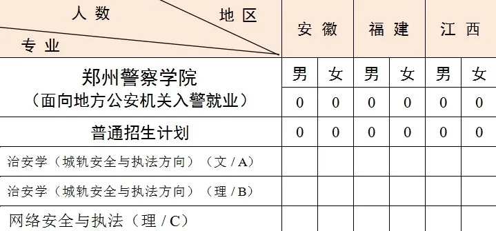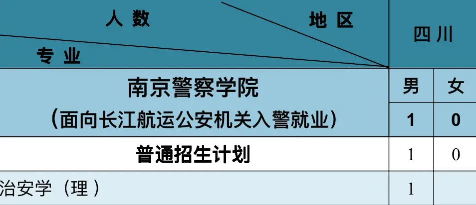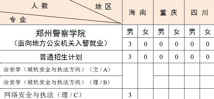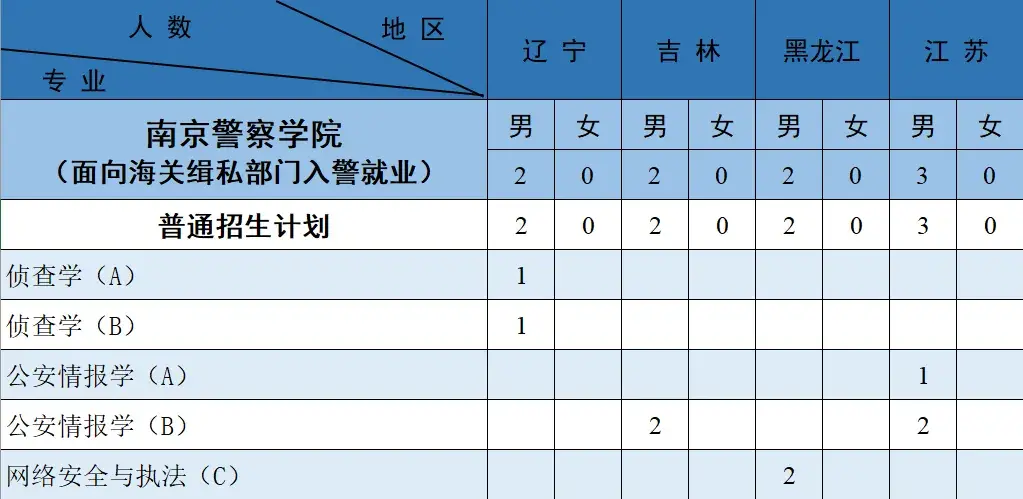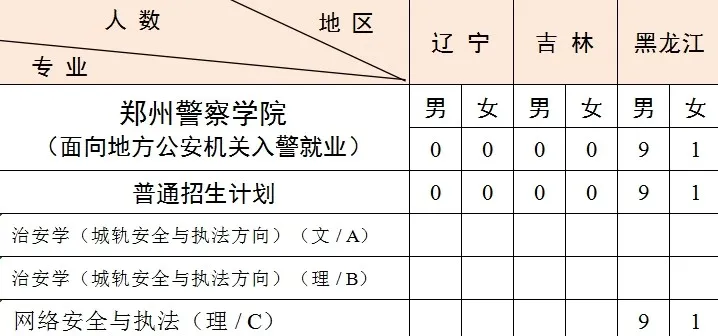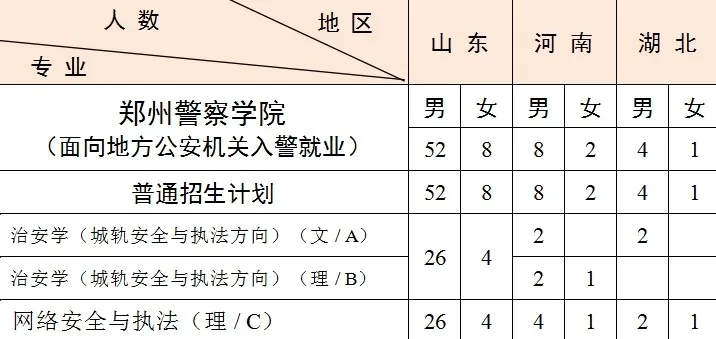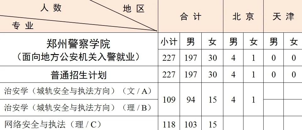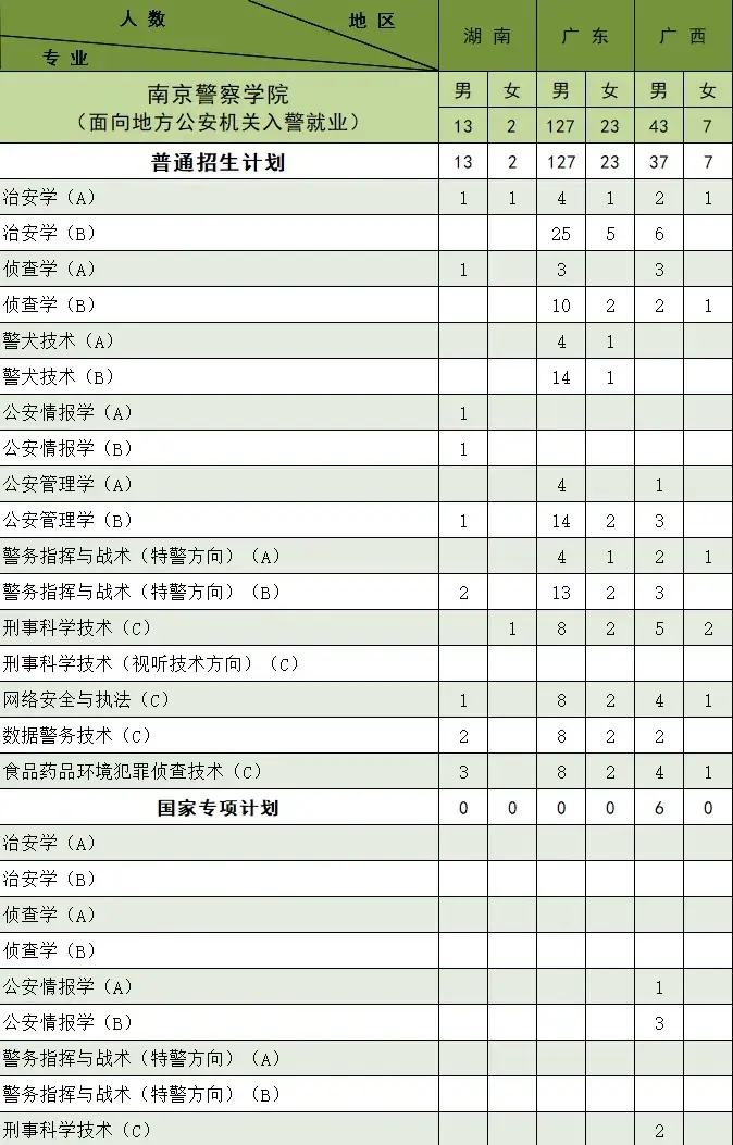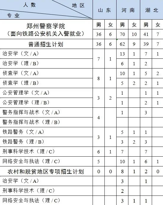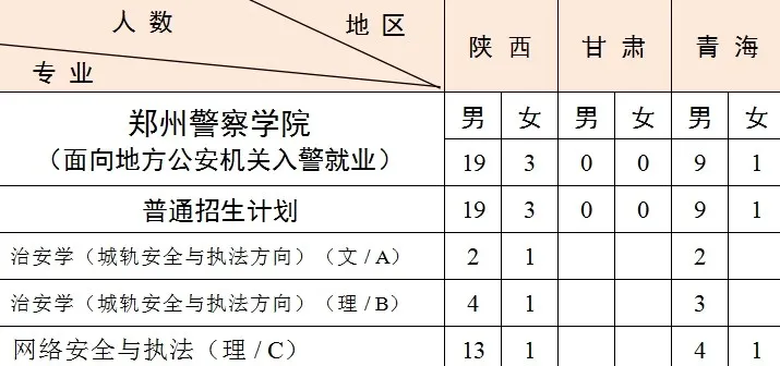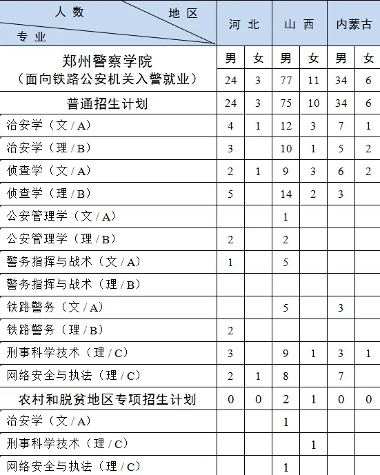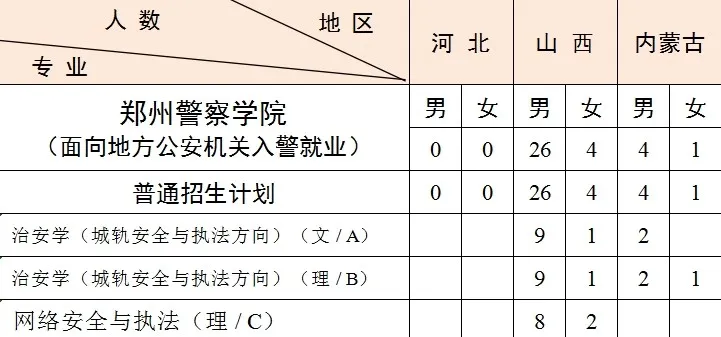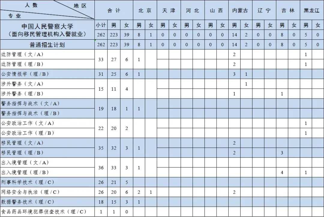 (1)新疆计划中含新疆协作计划转入 6人,均为男生 ,具体为治安学(文)2人、侦查学(理)2人、公安管理学(理)2人。