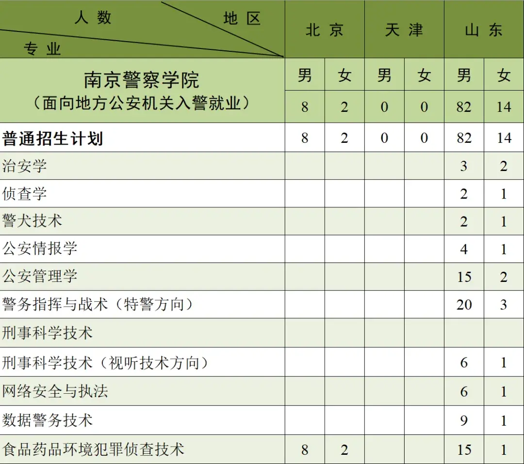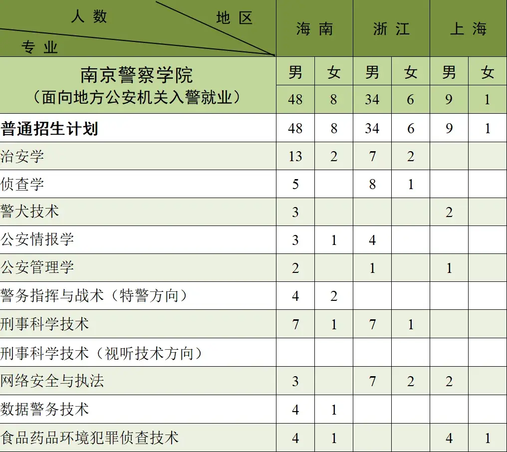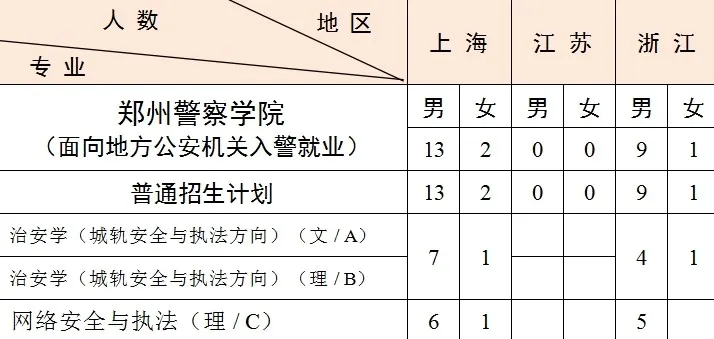 (1)在北京、天津、上海、浙江、山东、海南 6 个省(市),招生计划不分文科、理科。其中,公安学类专业招生计划要求必选政治,公安技术类专业招生计划要求必选物理和化学。(下同)