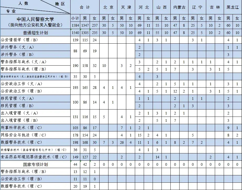 下文为大家整理了2024年中国人民公安大学本科公安专业招生计划(面向地方公安机关入警就业),其中: