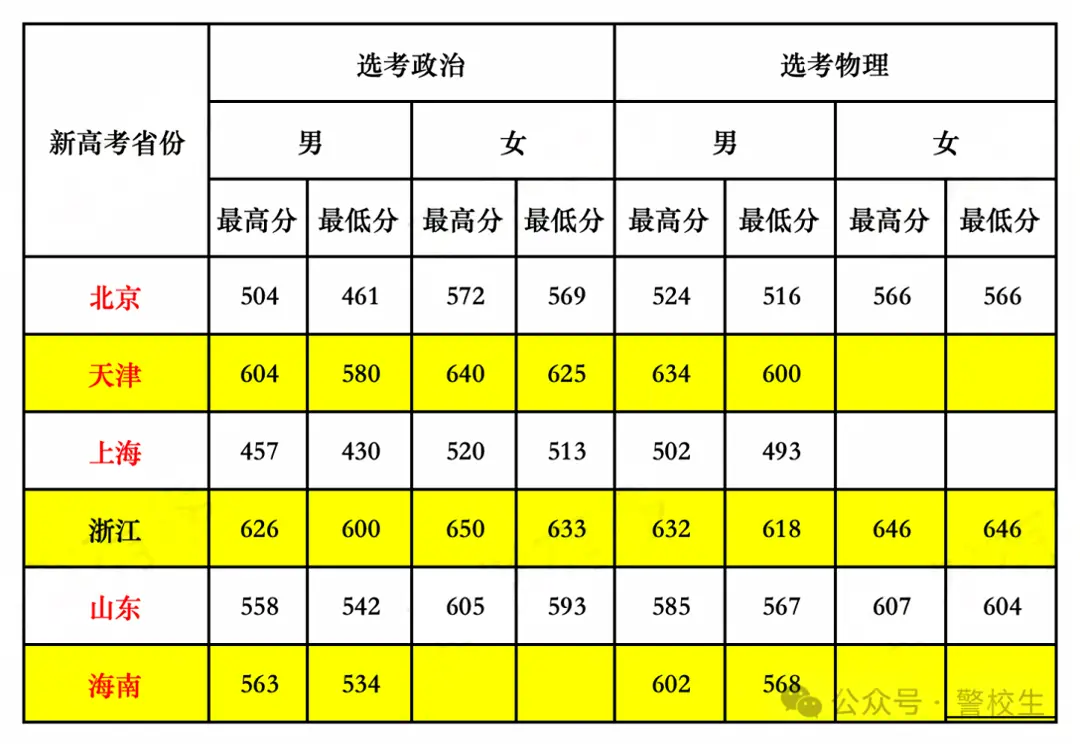公安大学在浙江录取分数为女生663分、男生647分(政治必选);女生663分、男生649分(物理/化学任选一门)。