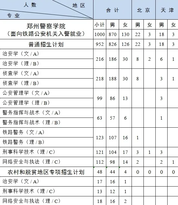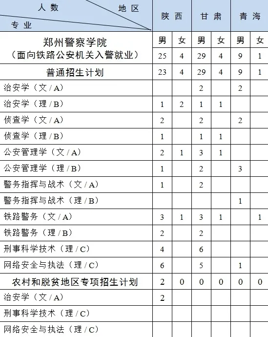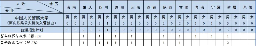 (2)新疆计划中含南疆单列计划 1人,具体为铁路警务(理)男生1人。