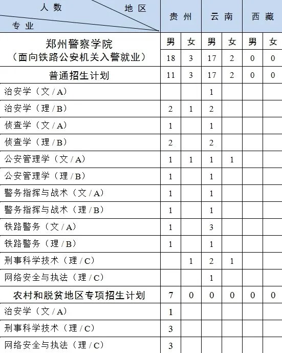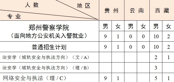 (3)西藏计划中含西藏高中班计划 3人,均为男生,具体为治安学(城轨安全与执法方向)(理)3人。