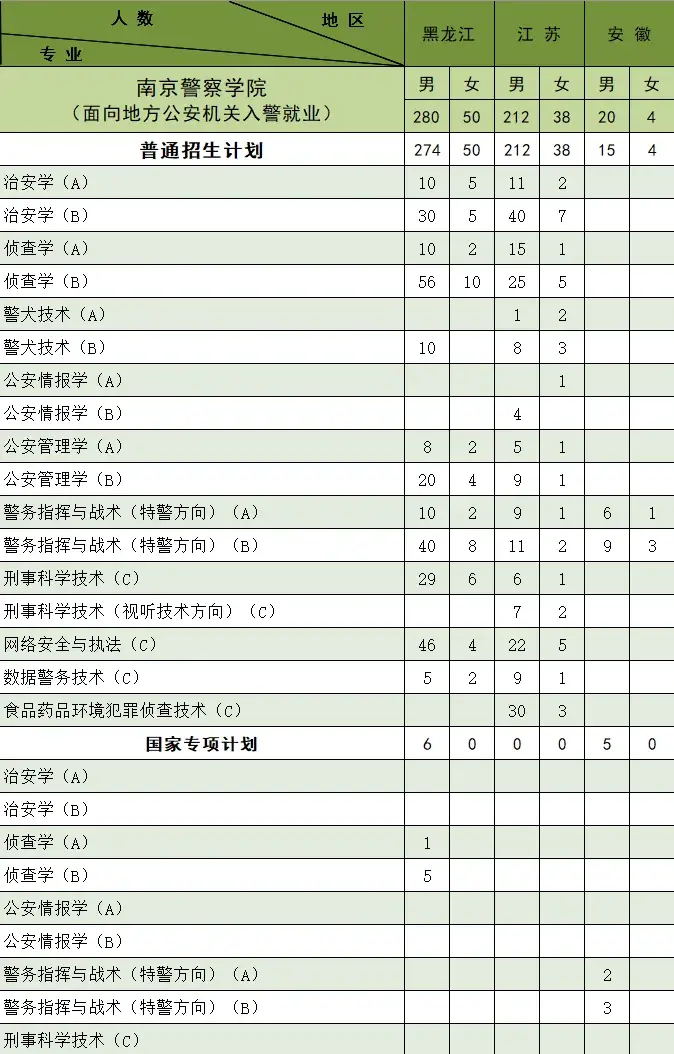 2024年南京警察学院面向全国31个省(自治区、直辖市)招生1795名,招生专业全部为公安专业。