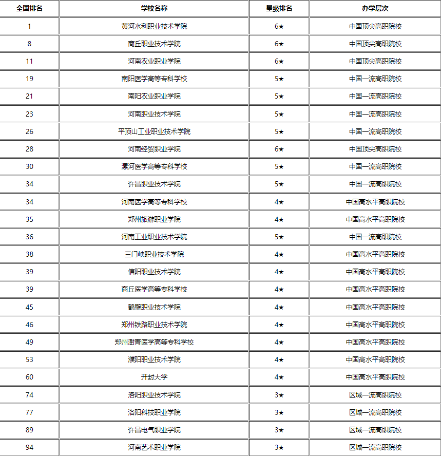 河南省专科学校排名的最新排行榜名单是怎么样呢?