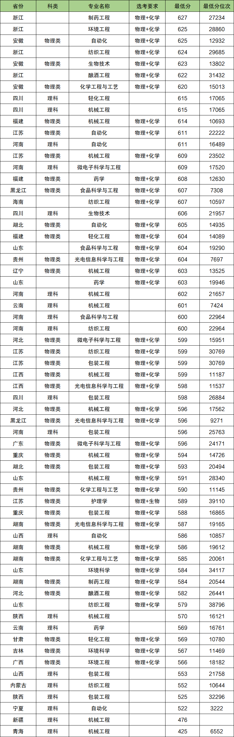 下面为各位整理了2024年江南大学各专业在全国各省的最低录取分数线情况。