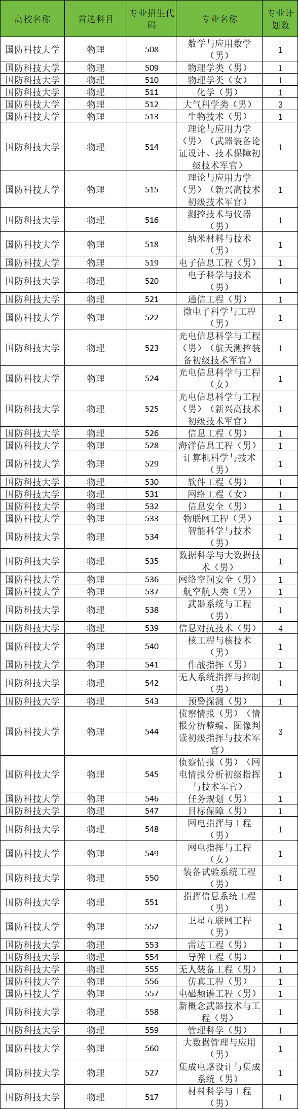 国防科技大学(院校代码4319):招60人
