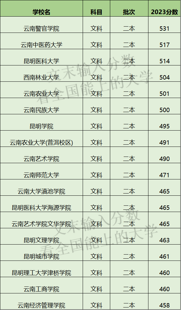 昆明二本大学有云南警官学院、昆明医科大学、云南师范大学。本文将为大家奉上昆明市内所有的二本大学2023年的招生录取分数线排名汇总,供2024年昆明高考生查阅!