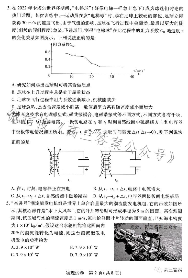 二.2023武汉四月调考物理参考答案
