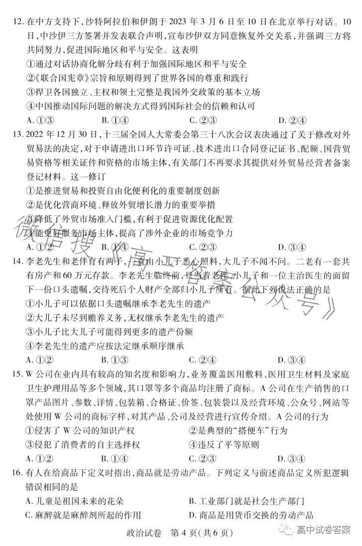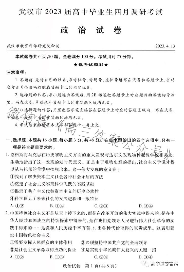 2023武汉四月调考是武汉市较为重要的考试,武汉2023年四调安排在4月11日举行,考试结束后,同学们应该都很关注2023武汉高三四月调考各科的答案,本期将整理2023武汉四月调考政治真题及参考答案,希望同学们通过这份资料,及时知晓政治成绩!