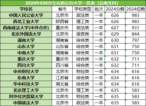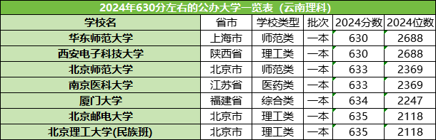 受分数线差异的影响,各省630分左右能上的院校都是有所不同的,小编在此以四川、河南、云南为例,整理了2024年这三个地区630分左右能上的院校名单,如下: