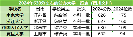 下图中,分数较高的院校有复旦大学、中国人民大学,上述提到的这些,分数都在630-635分之间,可供文科生选择的专业较多。