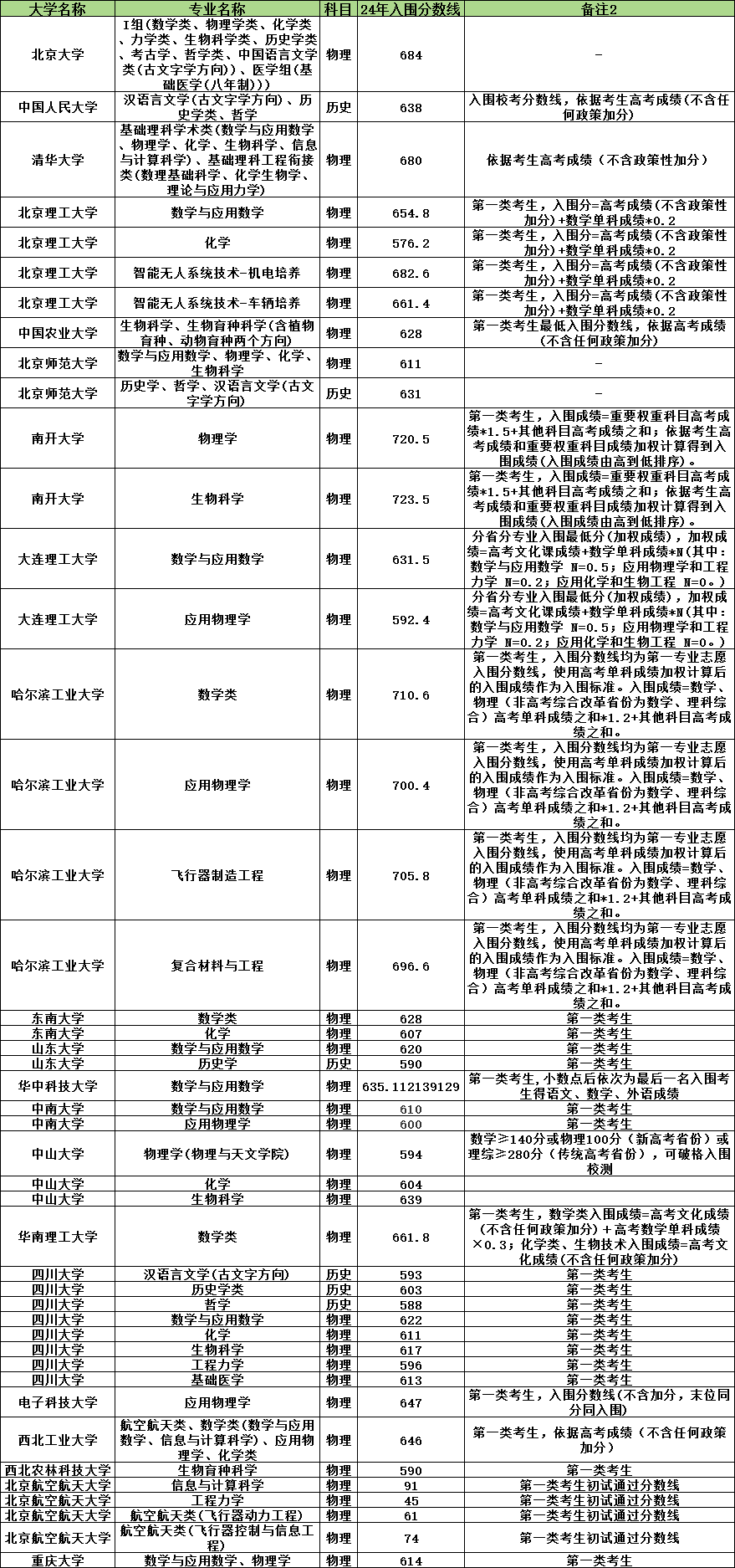 复旦、上海交大、南大、浙大、中科大、西安交大、同济、厦大、北航、兰大在高考出分前进行校测,因此没有强基入围分数线。本文整理的高校入围分数线是划线初试成绩。