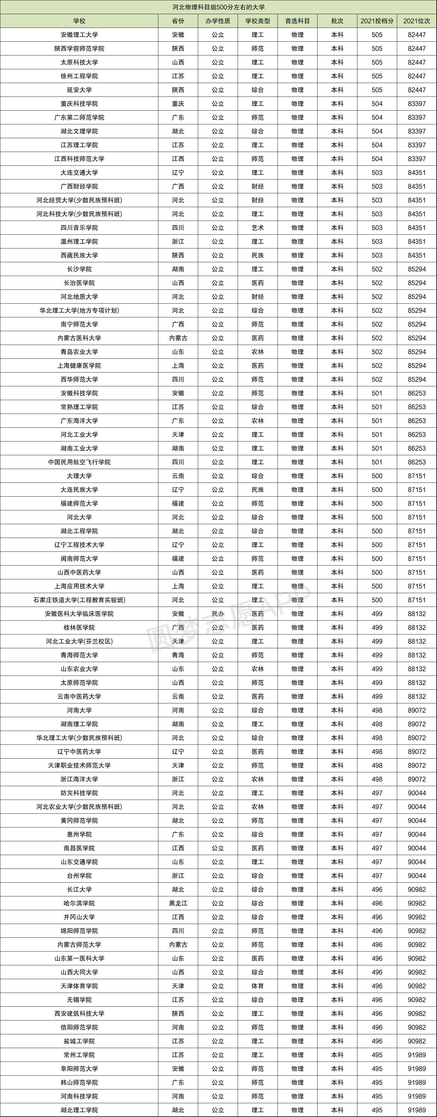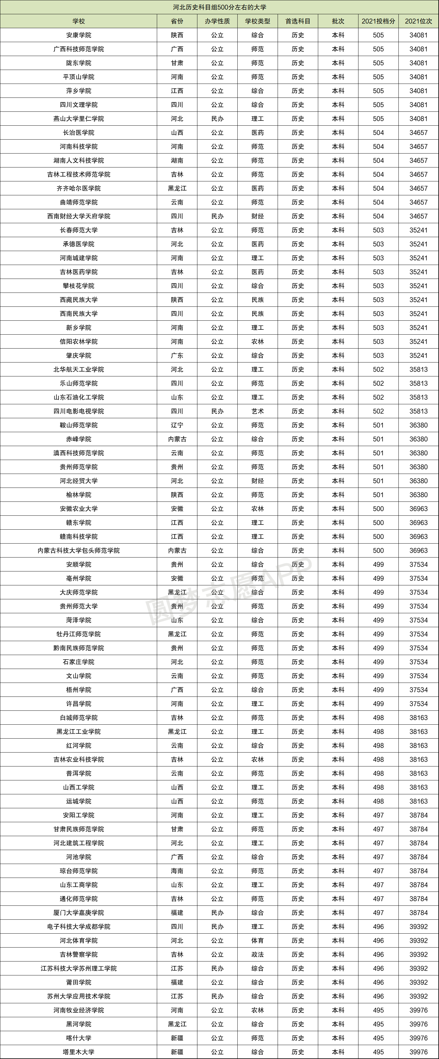 2021年河北实行的是“3+1+2”新高考模式,所以分数线是按照首选科目进行划分整理的,小编就为大家带来河北历史科目组和物理科目组500分左右的大学,供大家参考。