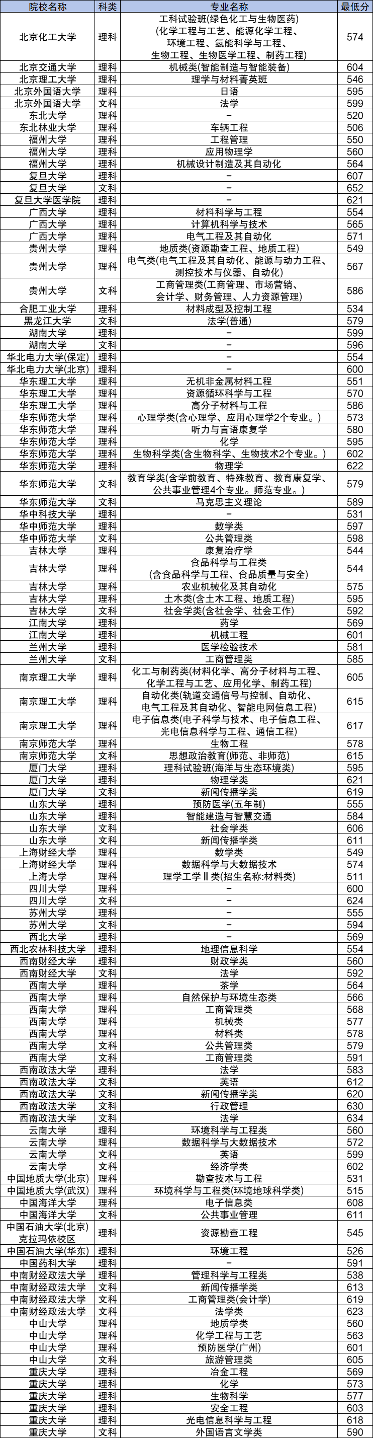 2024年高校专项计划各个大学分数线云南省一览表如下: