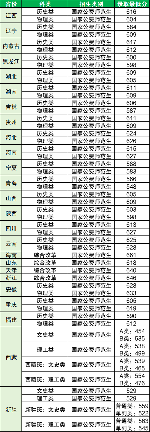 下面是东北师范大学公费师范生2025年全国各省最低分详情: