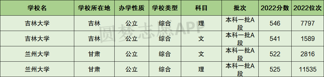 2022年兰州大学在吉林省最低为理科525分、文科522分