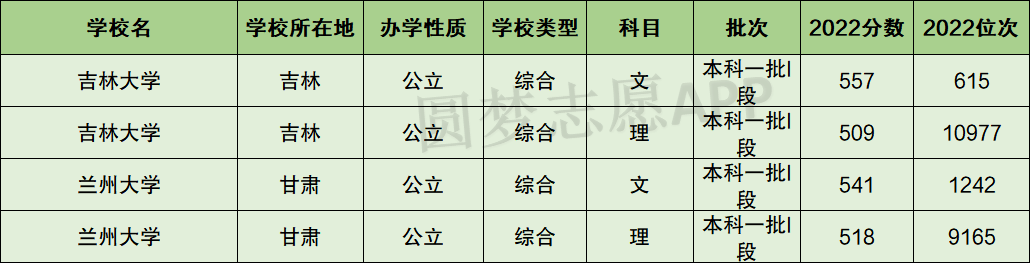 一、吉林大学和兰州大学分数线