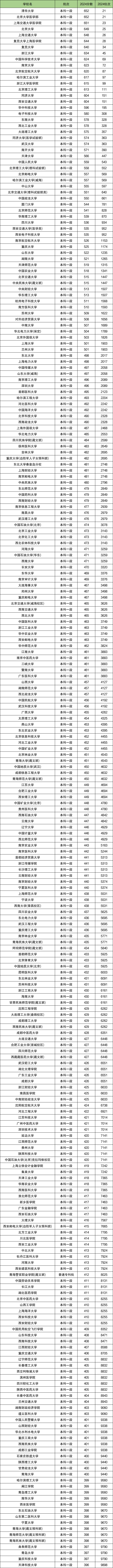 根据国内各大学在青海省理科的招录数据可知,2024年青海省高考成绩在1万名之前的理科考生能上的学校有258所,对应的分数为652分~396分。