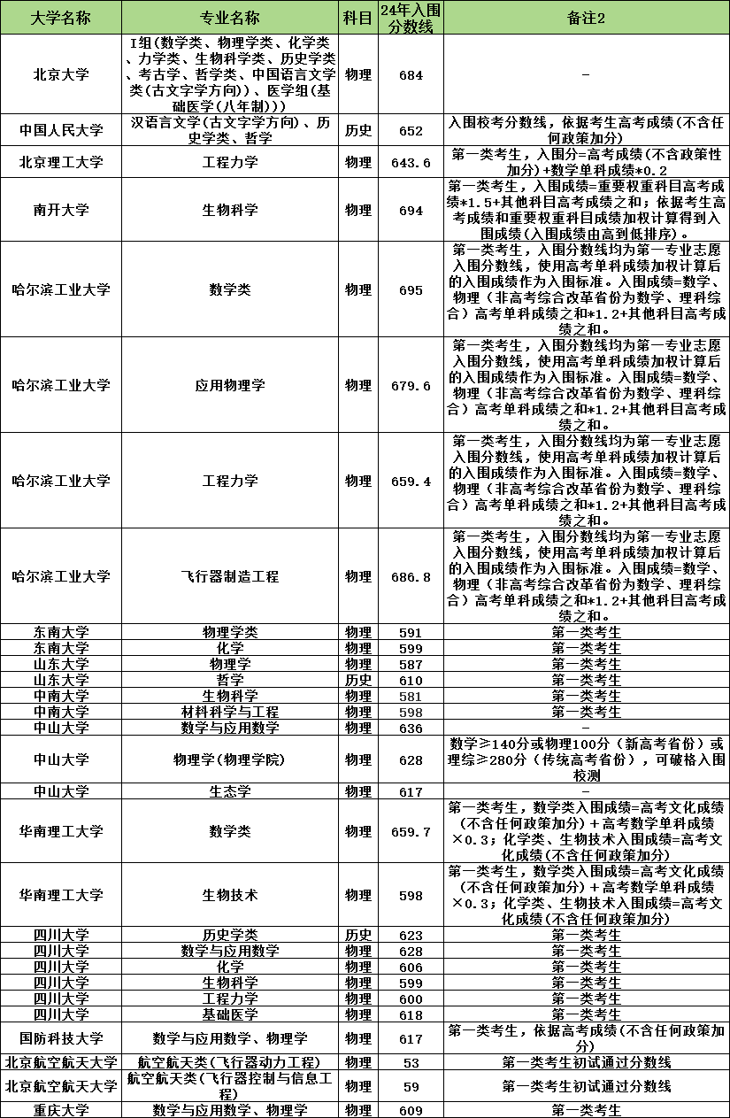 复旦、上海交大、南大、浙大、中科大、西安交大、同济、厦大、北航、兰大在高考出分前进行校测,因此没有强基入围分数线。本文整理的高校入围分数线是划线初试成绩。