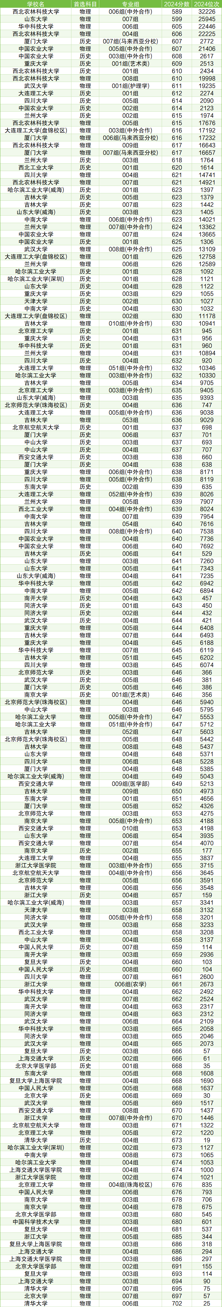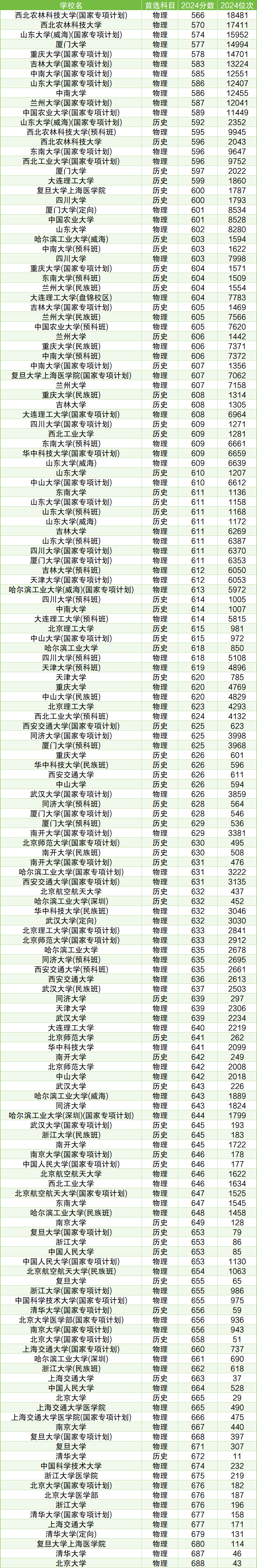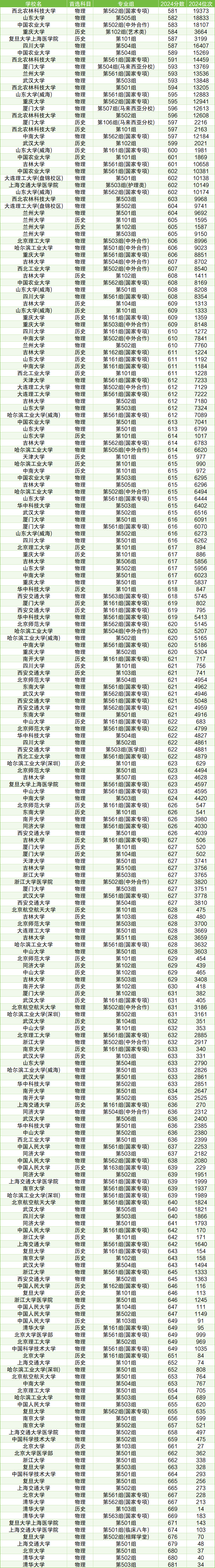 以物理类为例,考生可报考的最低分副部级大学有西北农林科技大学(第562组(国家专项)),2024年最低分均为581分,位次范围在34-19373名之间。