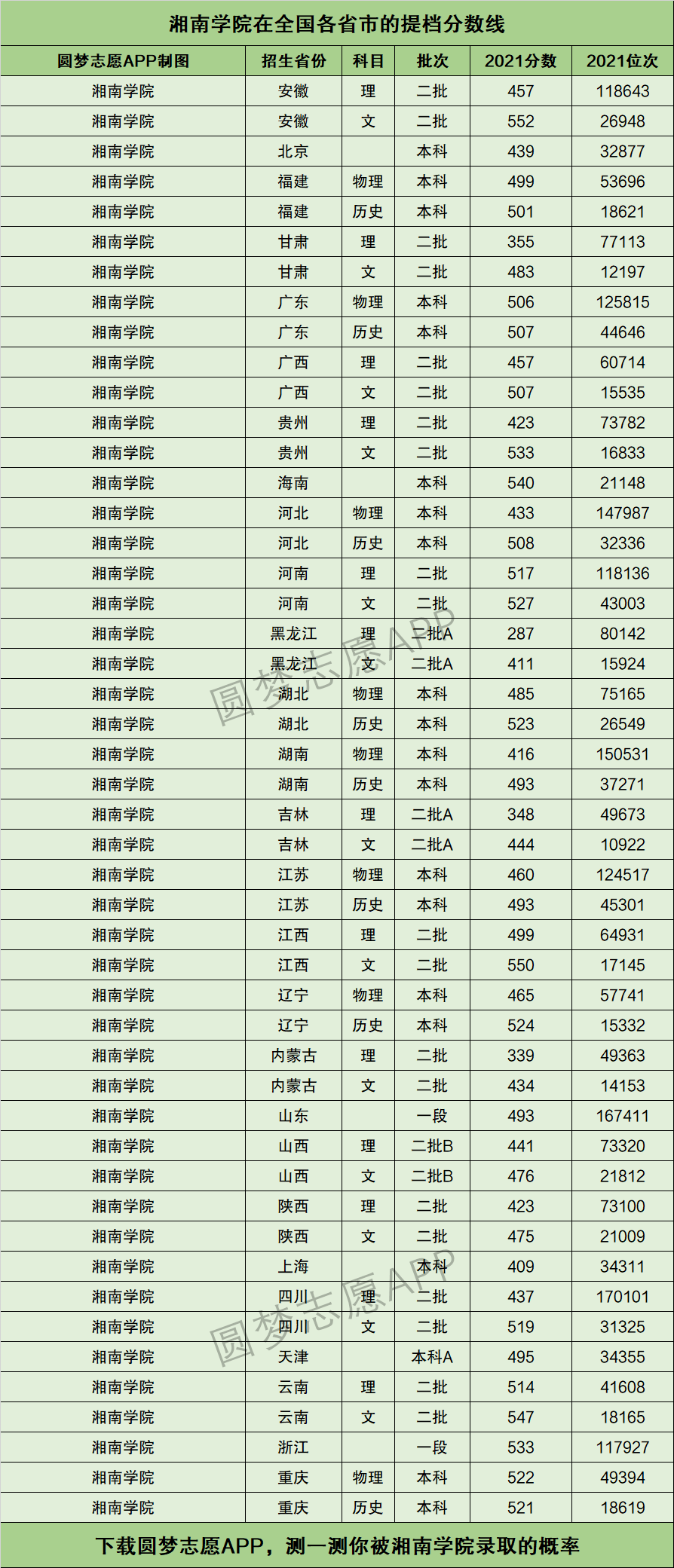 湘南学院2021年的提档分数线是多少?湘南学院的调档比例是多少?本文将为大家奉上这些重要信息,希望2022年的高考生了解湘南学院在全国各省市的最低分数线及位次后,都能被湘南学院给成功录取。