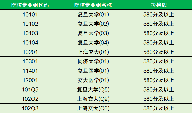 2024年上海市超过580分的院校专业组依旧没有透露具体分数情况,院校包括复旦大学、复旦大学医学院(01组)、上海交通大学、上海交通大学医学院(01组)。