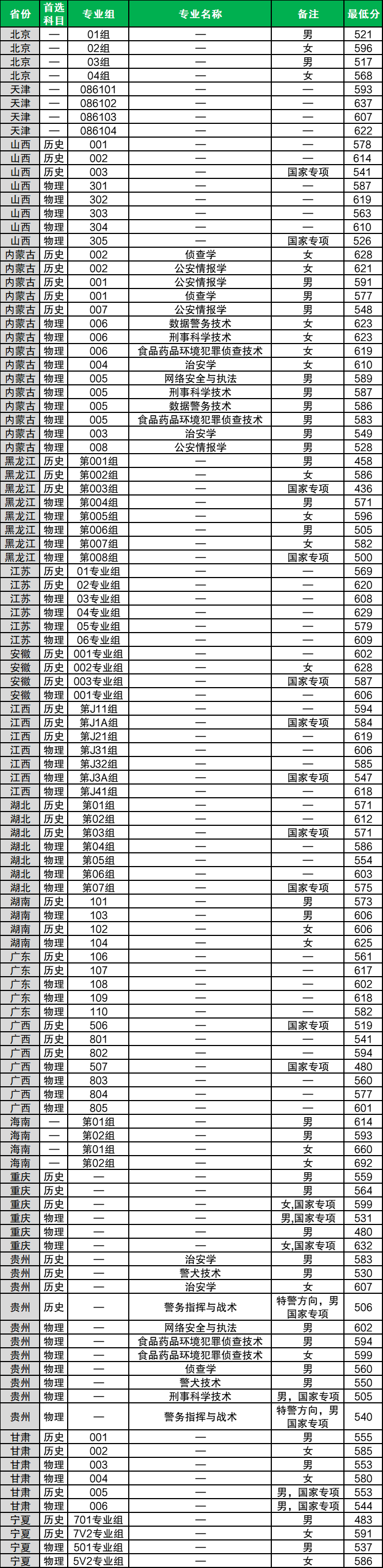 2024南京警察学院各专业(组)在全国各省录取分数线: