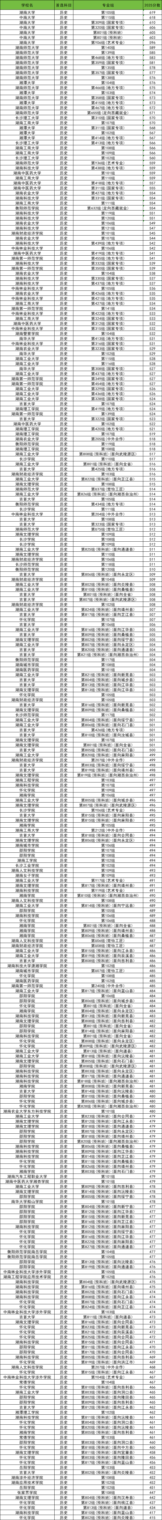 一、2025湖南各高校历史类录取分数线一览表