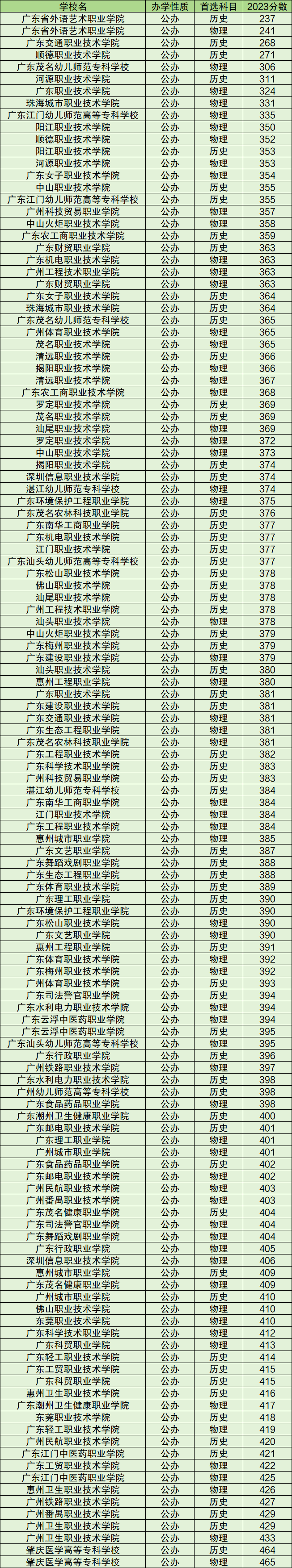 2023年广东教育考试院公布各公办专科院校在广东的分数线,以下将介绍广东各专科学校的最低分。