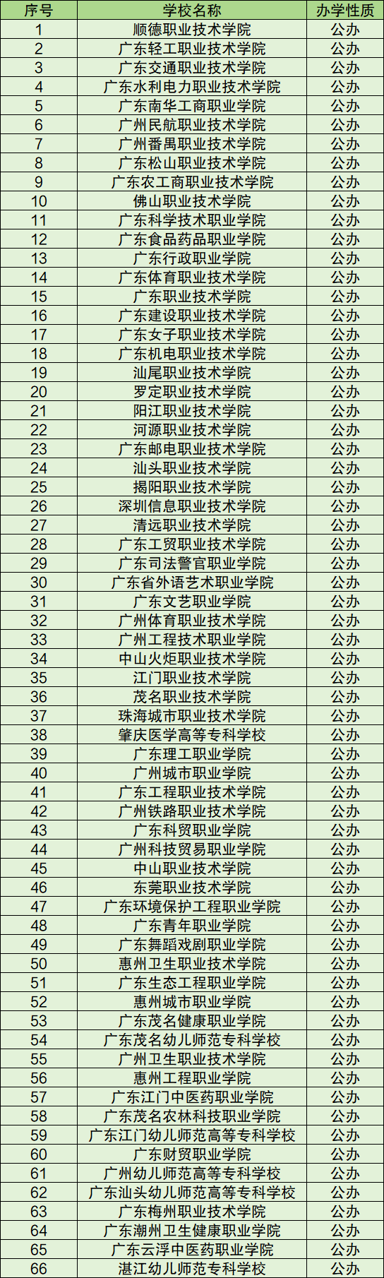 广东公办专科学校有66所,包括顺德职业技术学院、广东轻工职业技术学院、广东交通职业技术学院、广东水利电力职业技术学院、广东南华工商职业学院等。本期将介绍广东所有公办专科大学名单,以及2023年广东所有公办专科大学高考分数线。