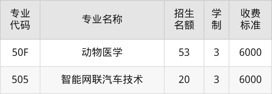 | 11A | 宠物医疗技术 | 15 | 3 | 6000 |