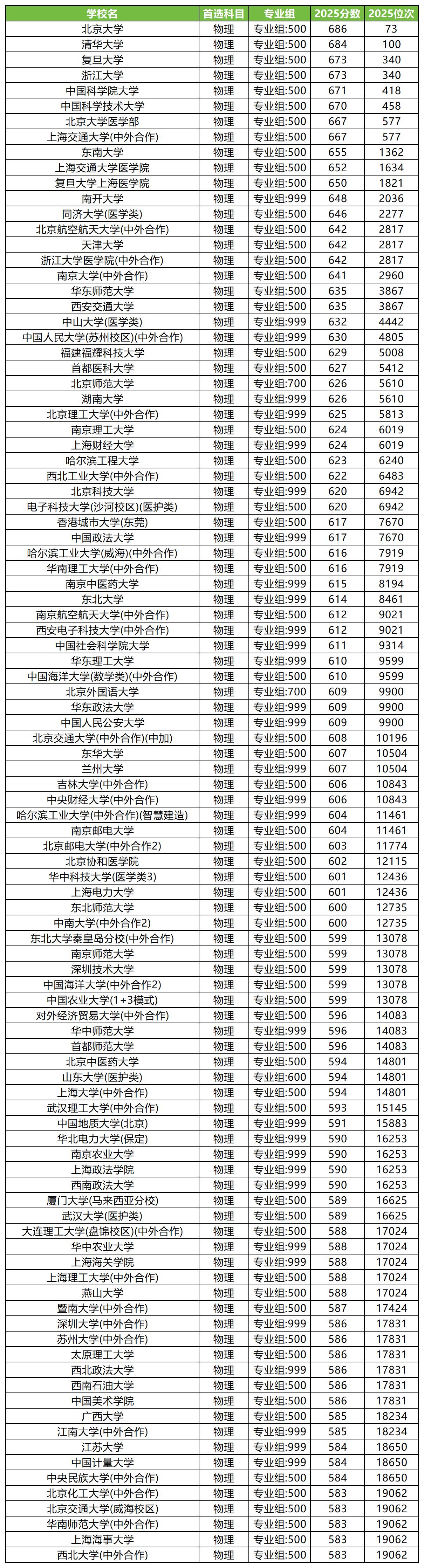 下面是2025年福建高考各大学物理类最低录取分数线一览表(TOP100,需滑动查阅):