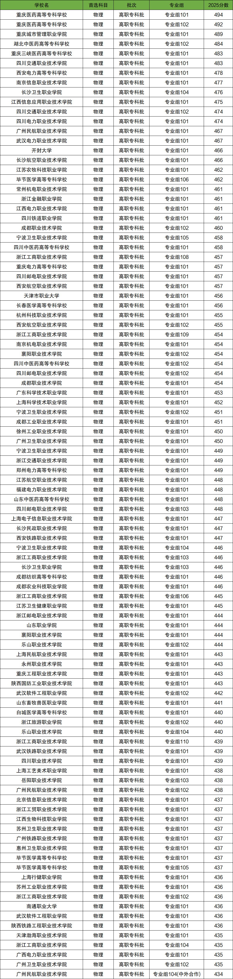 2025年四川公办专科学校物理类招生分数范围在150分~494分之间。