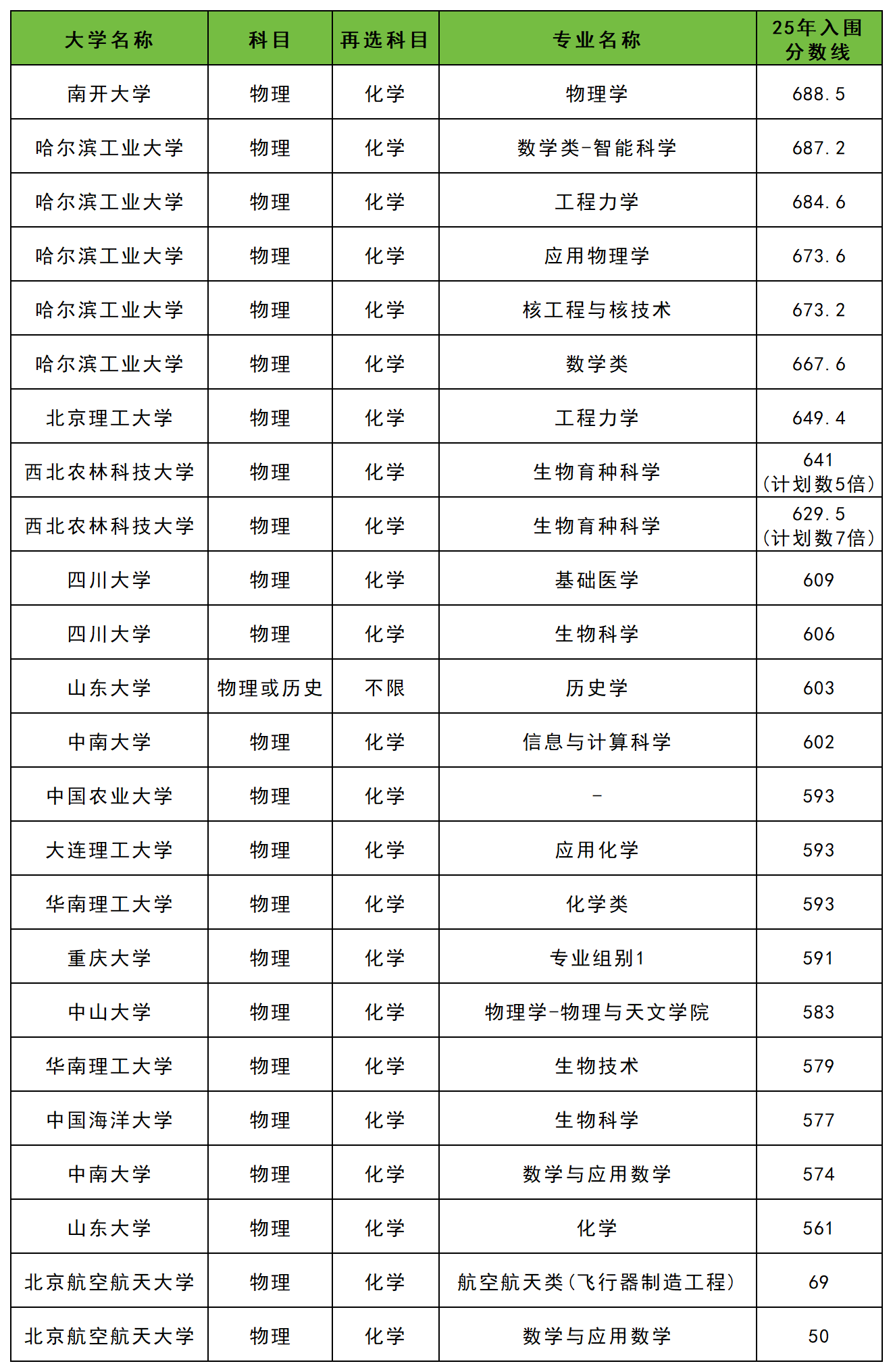 中国农业大学:物理类593分;