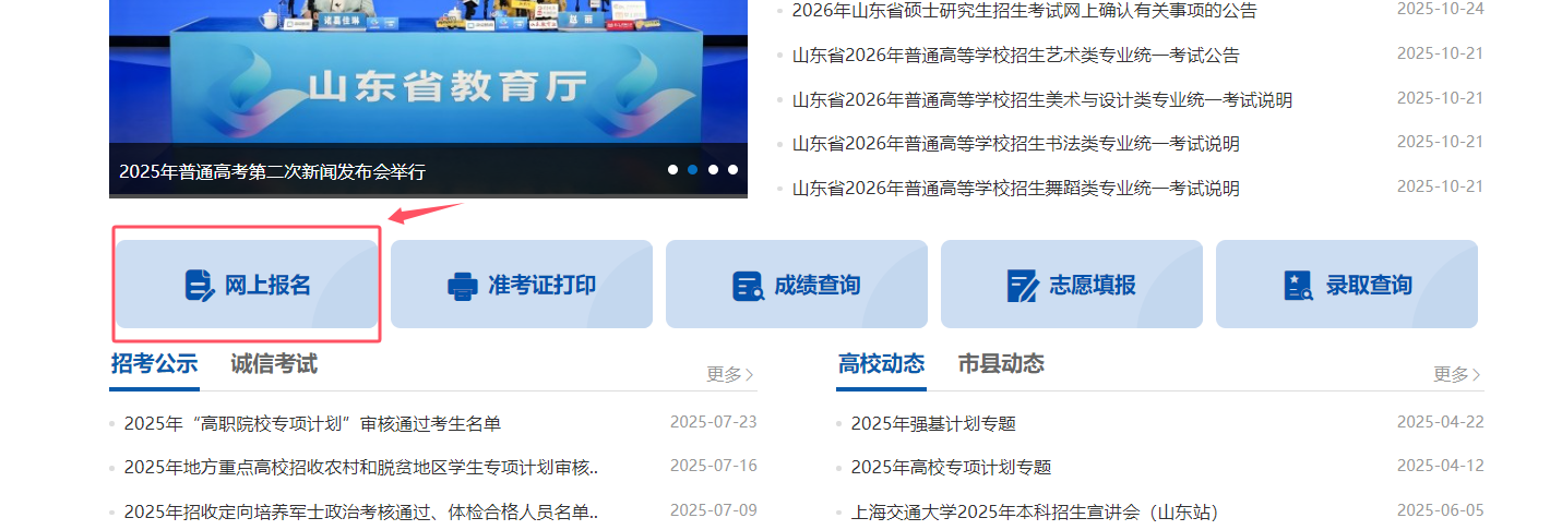 山东2026年高考报名系统唯一官方入口为山东省教育招生考试院官网。网址如下: