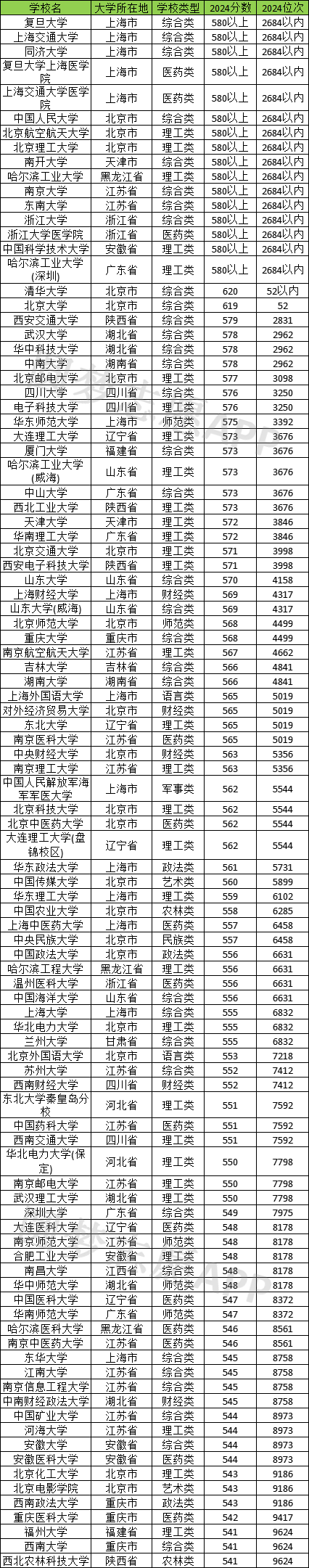 由于本文篇幅有限,在此整理的是2024年全国各本科大学(公办)在上海市本科批次的录取分数线TOP100一览表,详情如下: