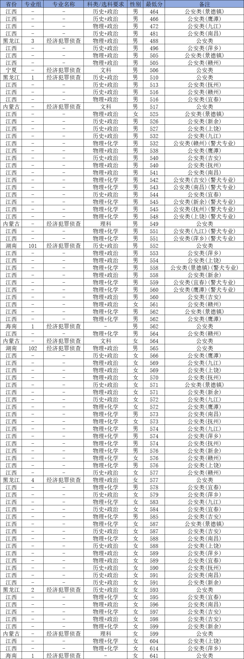 三、江西警察学院录取分数线2024