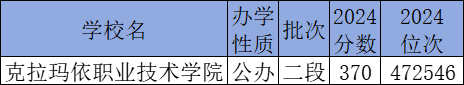 370分能上的大学中公办的有克拉玛依职业技术学院。