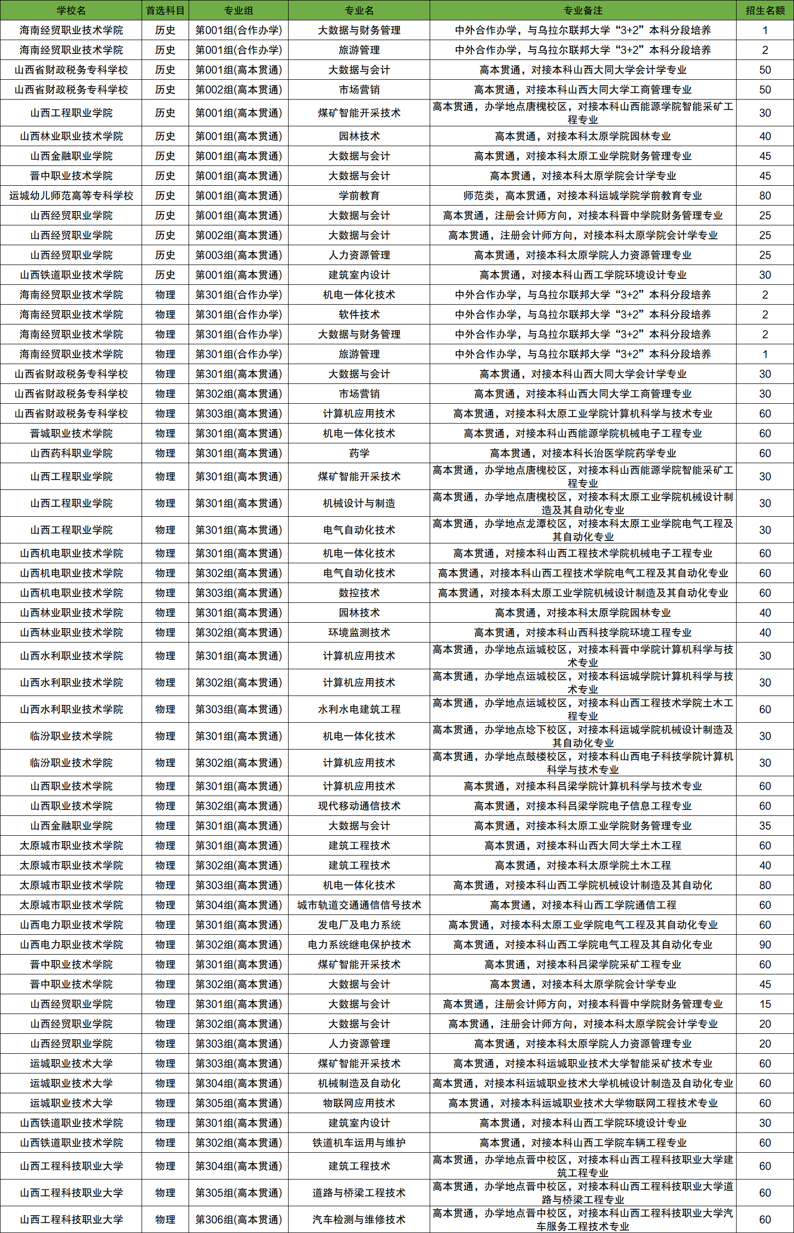 山西水利职业技术学院:计算机应用技术,计划招生60人,衔接本科高校为运城学院。
