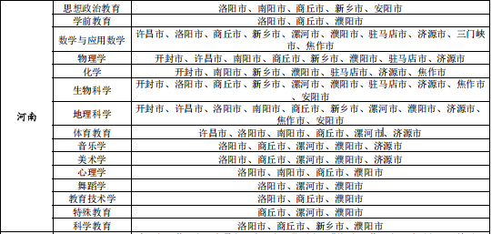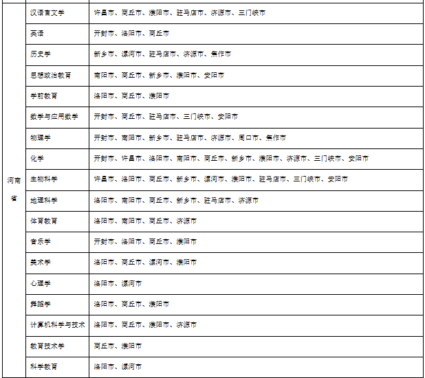 | 体育教育 | 洛阳市、南阳市、商丘市、漯河市、驻马店市、周口市、焦作市 |
