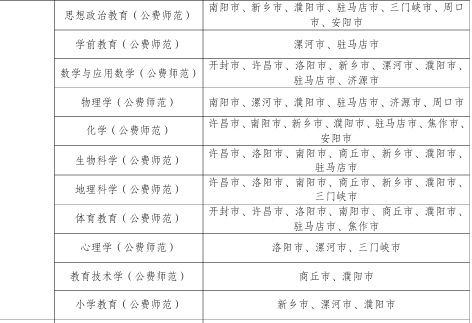 | 数学与应用数学 | 许昌市、南阳市、新乡市、周口市、平顶山市、安阳市 |