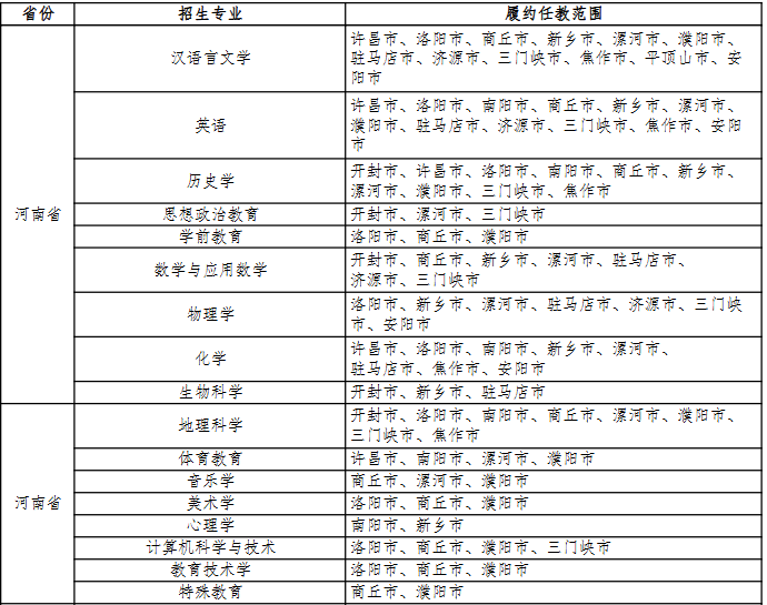 在河南招生的国家公费师范生院校有6所,以下内容根据各校公布的河南省公费师范生专业履约任教范围表整理: