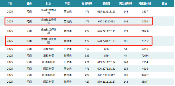 2025年历史类国家公费师范生在河南录取最低分617分,超特控线65分。
