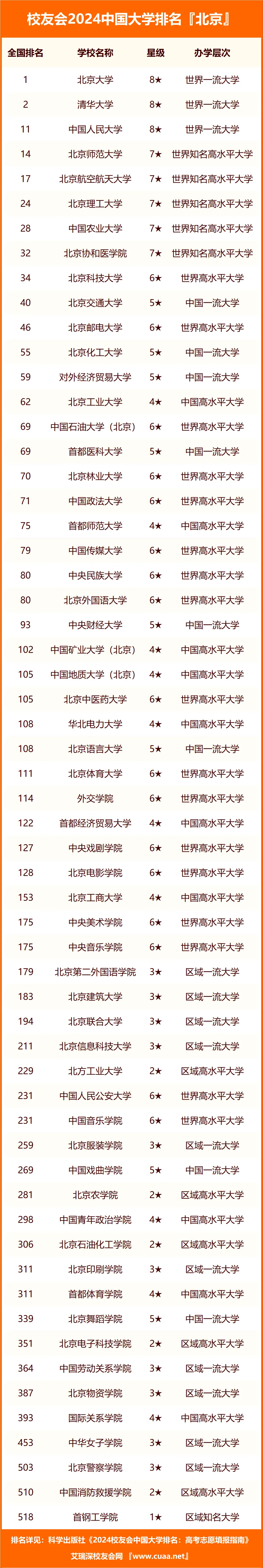 以下为2024年校友会北京市公办本科大学排名,各位北京市的同学和家长可作为参考。
