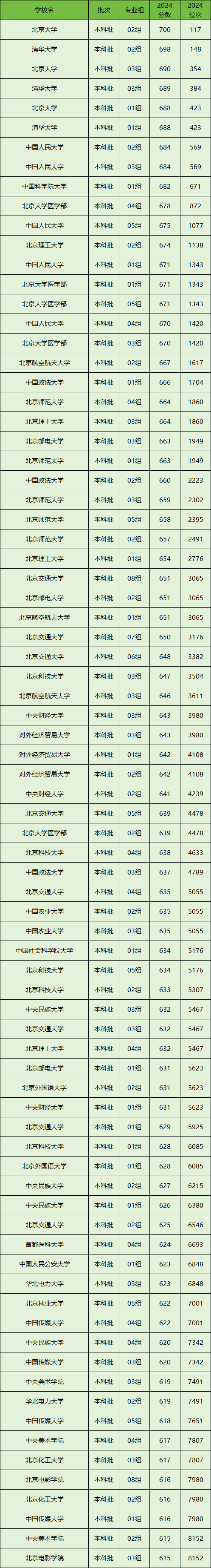 本文整理的是2024年北京市所有公办本科大学录取分数线,供2025年的考生们参考。