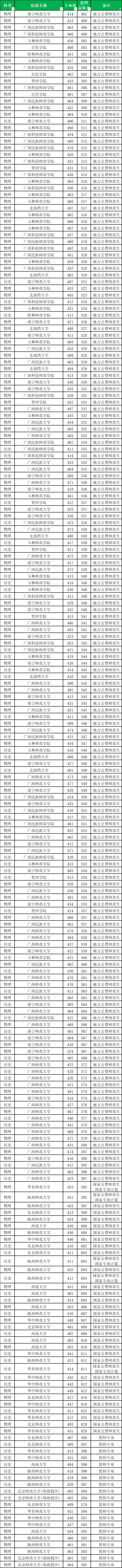2025年广西本科提前批其他二类院校分数线(物理类)(含军警院校)