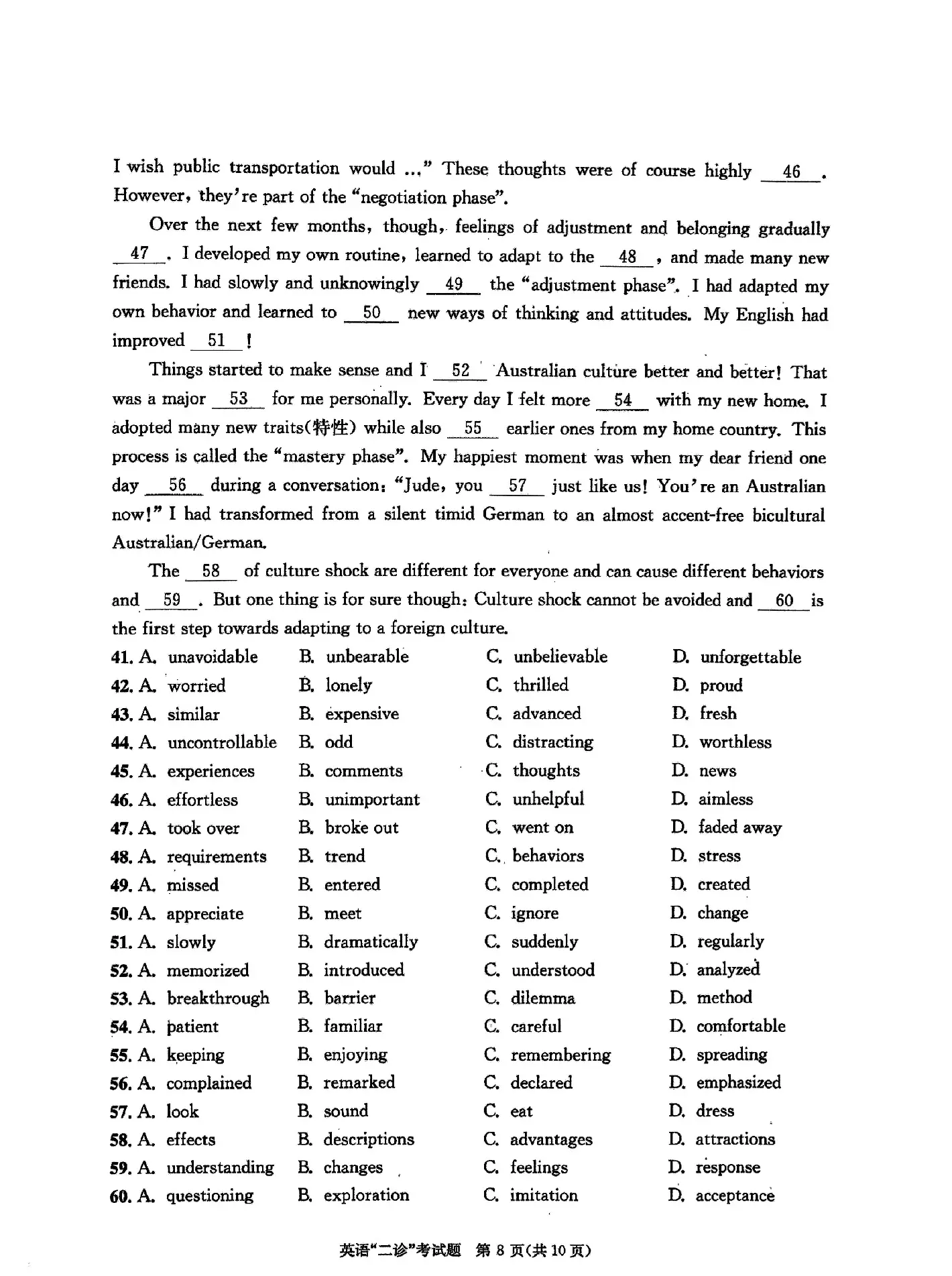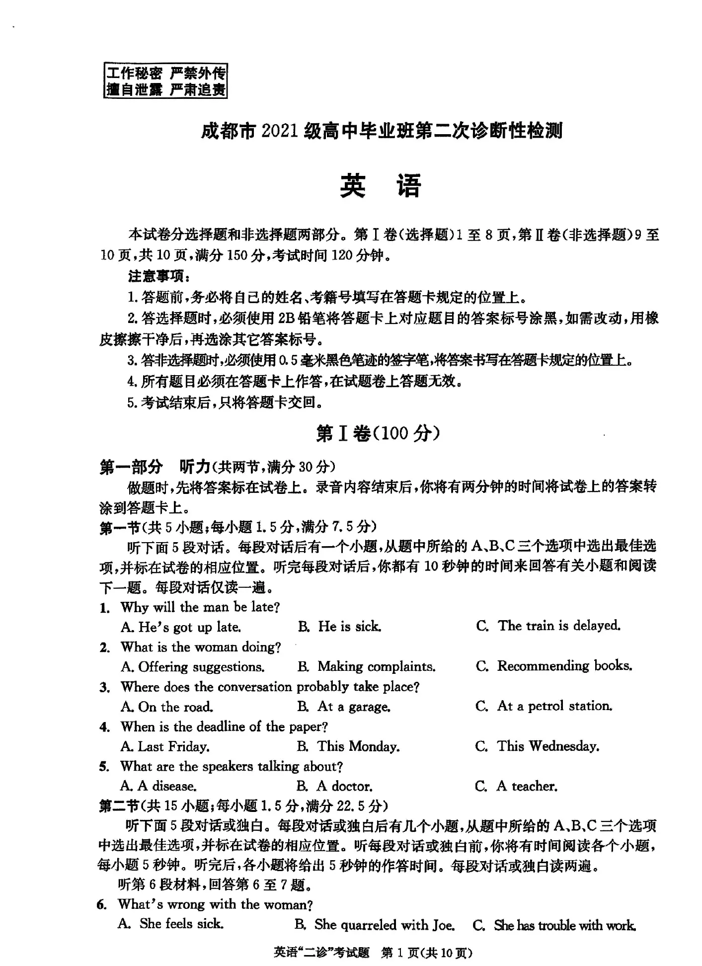 为让各位考生能尽快了解到此次考试的成绩,查漏补缺,方便安排后续的复习计划,本文整理收集了成都二诊全科试题及答案解析,以供参考。