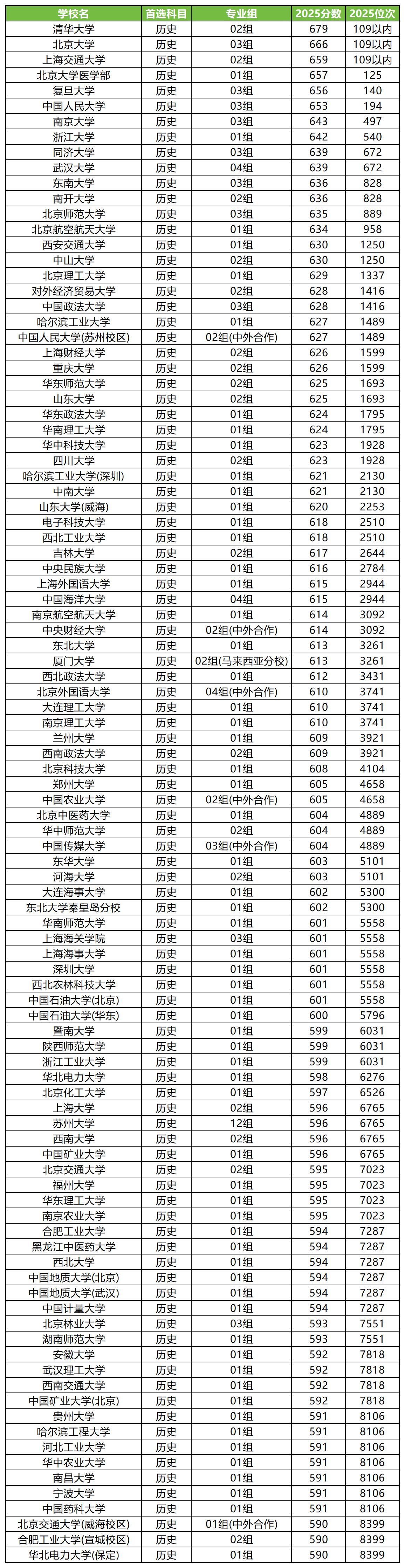 二、江苏2025各大学历史类录取分数线